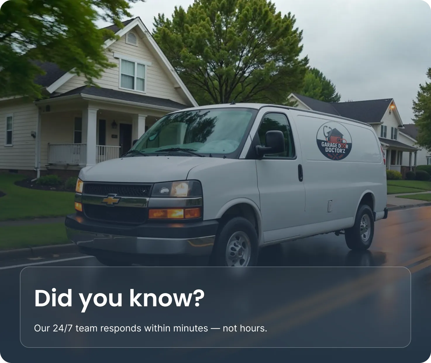 If your garage door won’t open or close after hours, don’t force it. Call Garage Door Doctorz immediately. We provide 24/7 emergency repair to handle urgent issues safely and quickly.