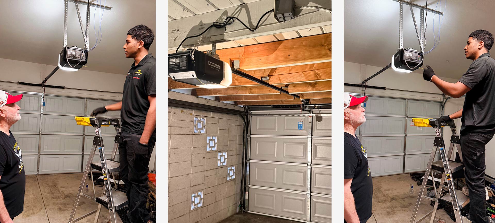 We test the door manually for balance and then under opener power, verifying smooth travel, proper force settings, and reliable safety-reversal functionality.